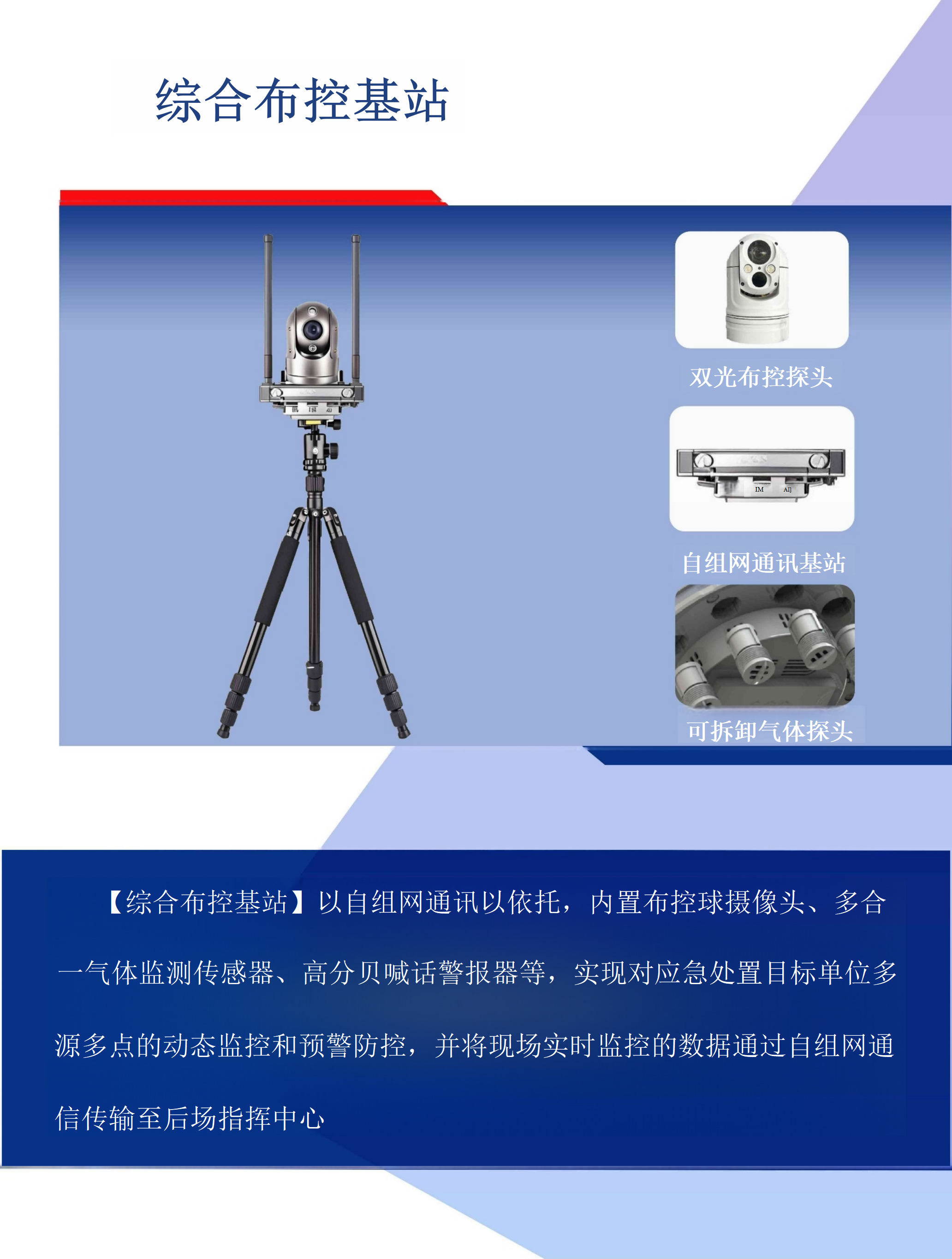 综合布控基站和复合型自组网基站支持快速部署,适应不同环境,确保在应急 救援中能够第一时间响应,并提供无缝的通讯覆盖。