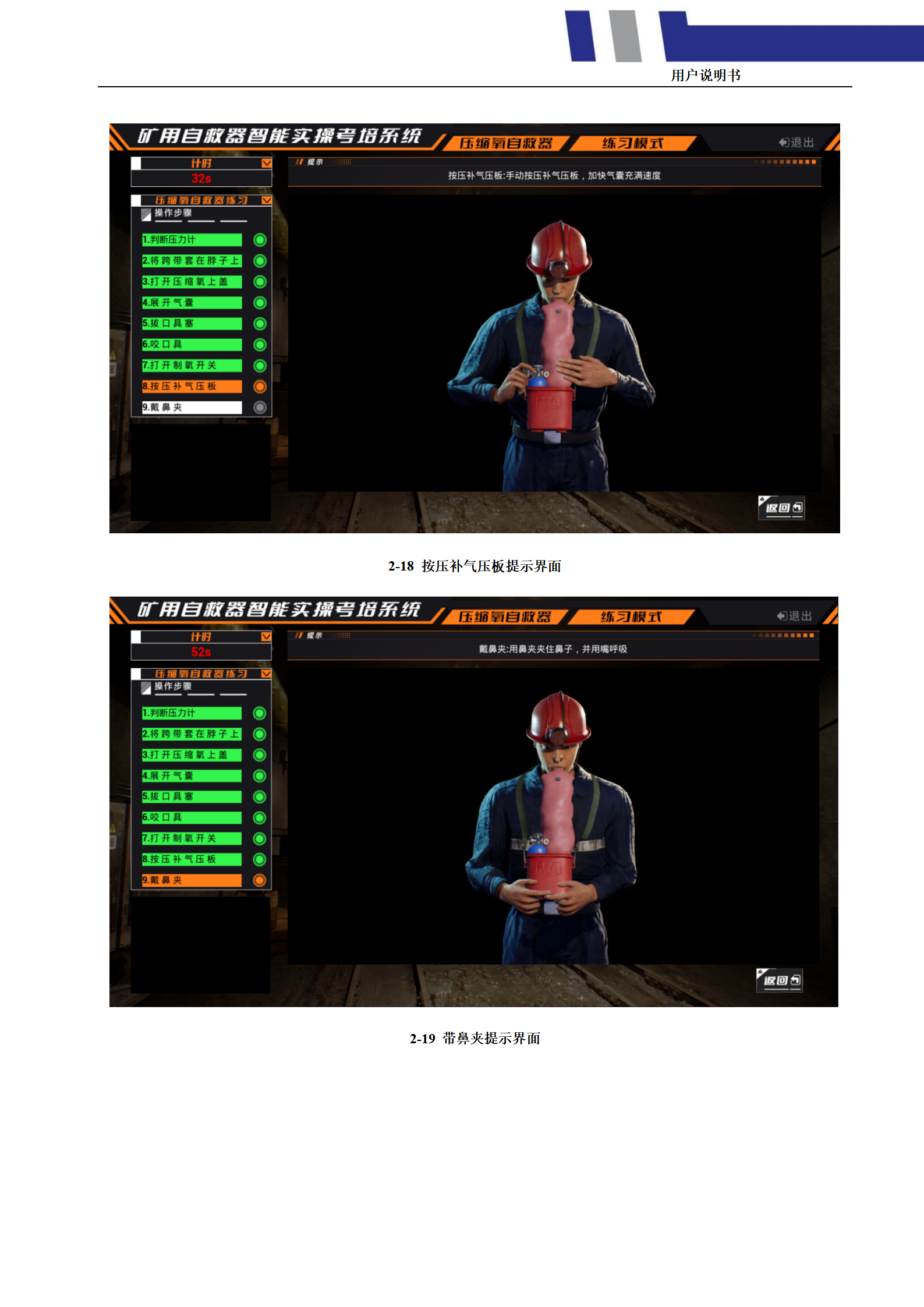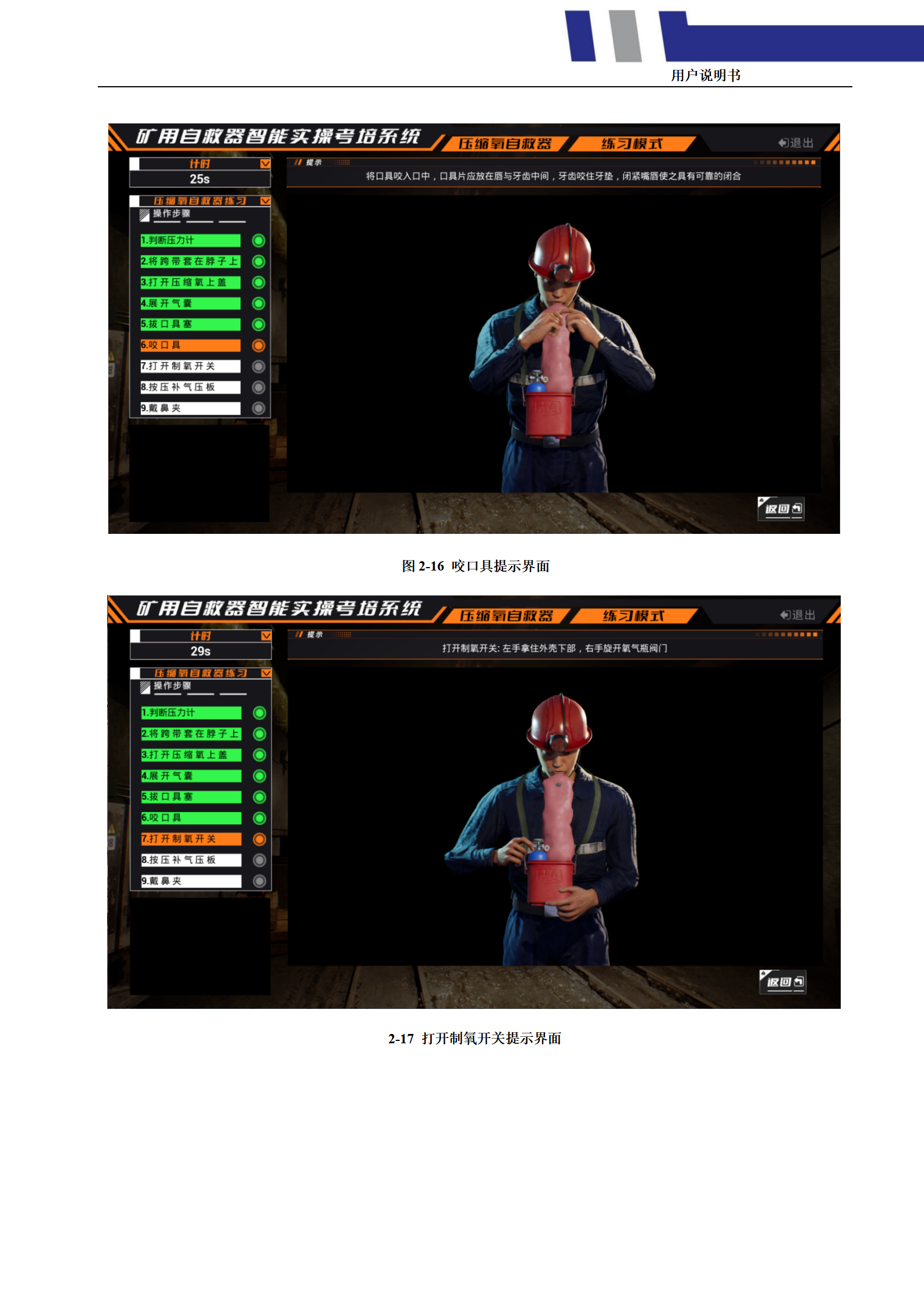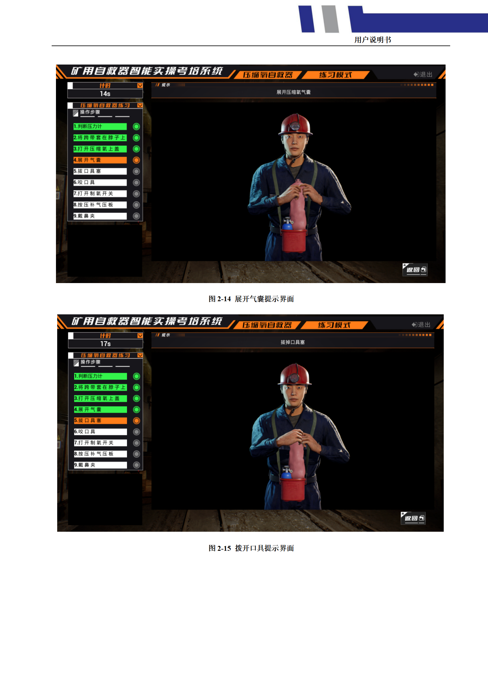 (2)智能便携式实操自救器根据矿方使用的自救器定制开发,能够完全拟矿用自救器的操作动作。