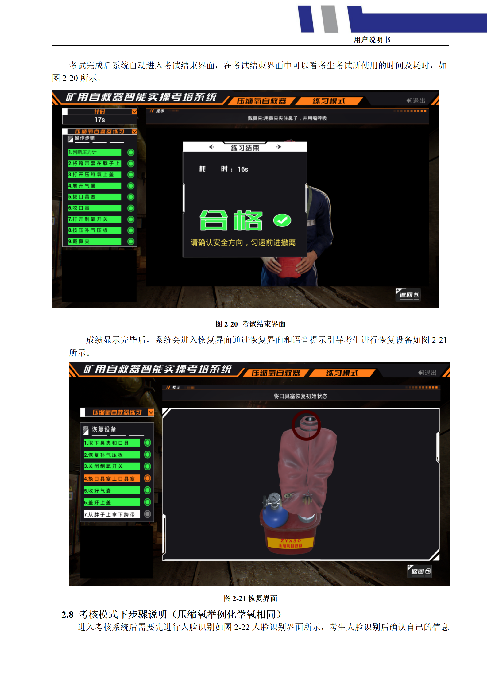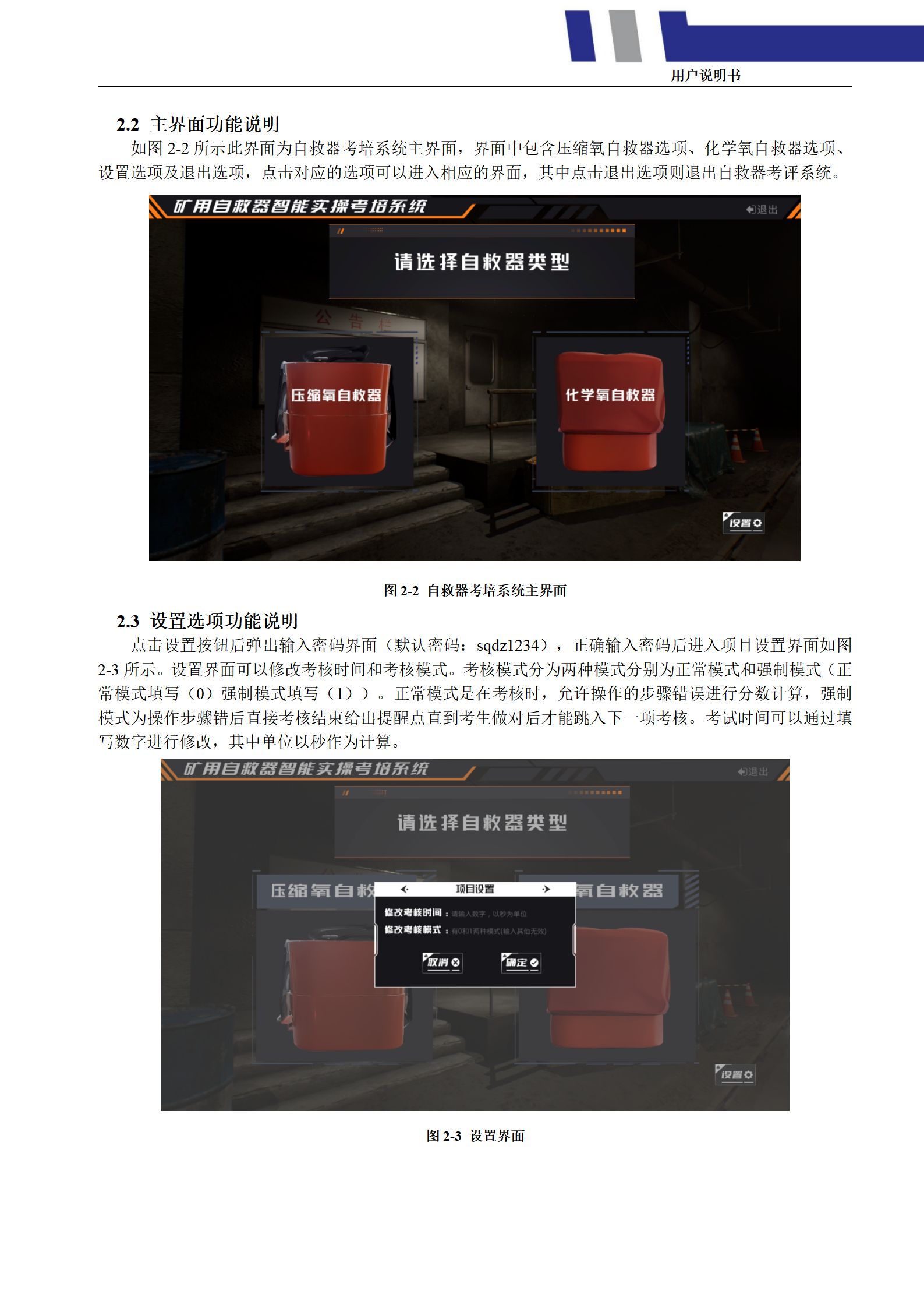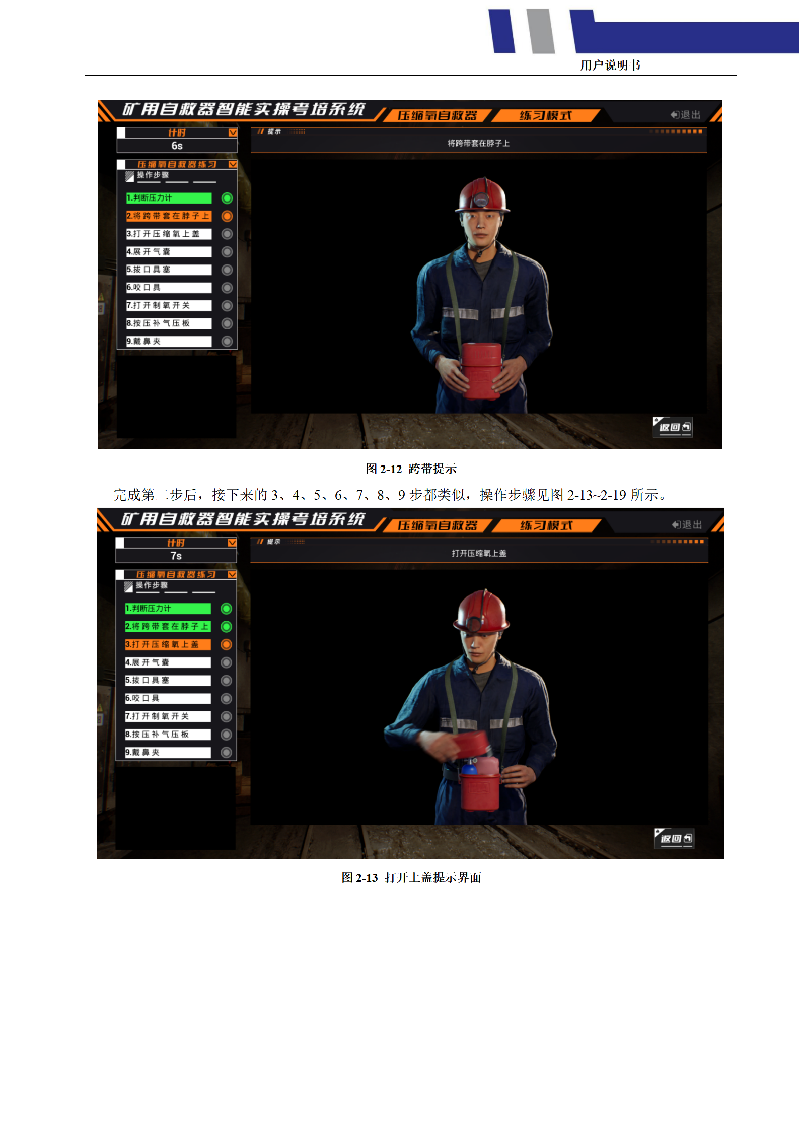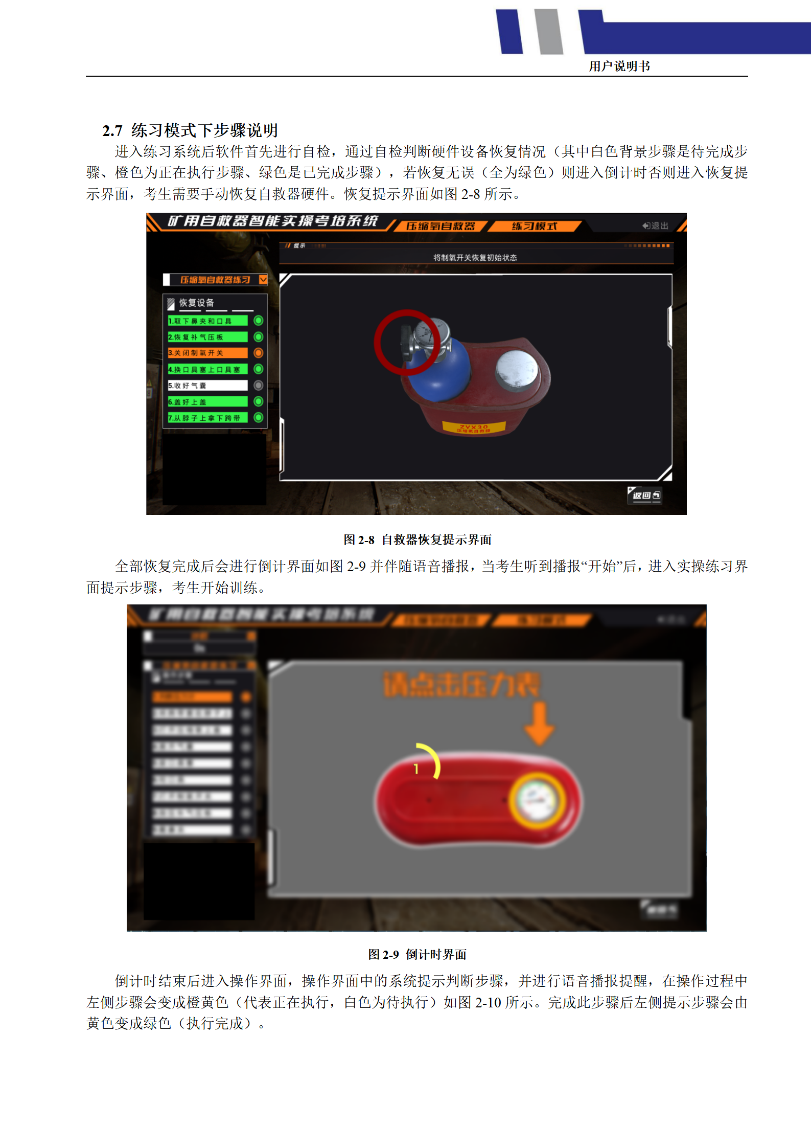 (2)智能便携式实操自救器根据矿方使用的自救器定制开发,能够完全拟矿用自救器的操作动作。