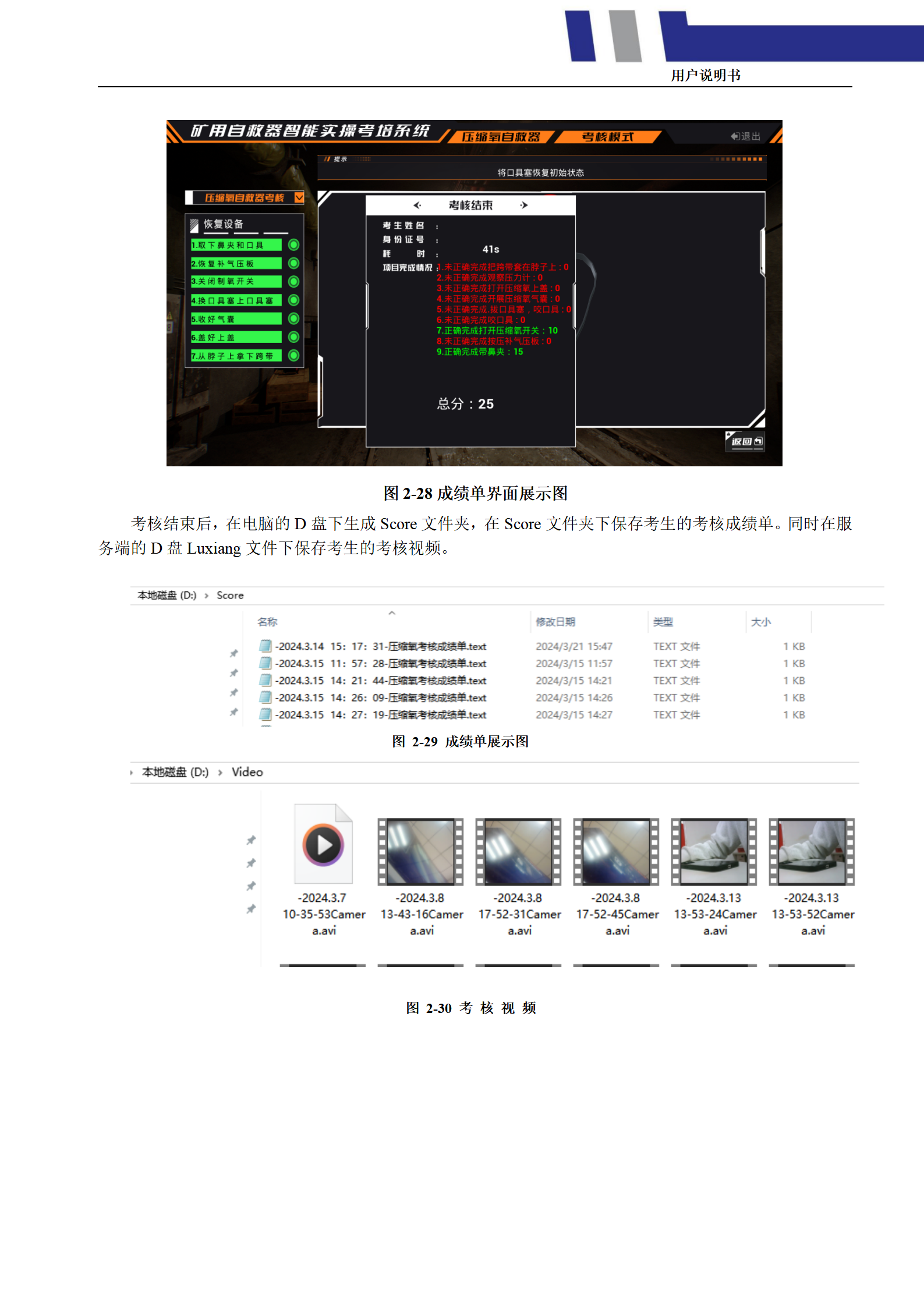 考核结束后,在电脑的D盘下生成Score文件夹,在Score文件夹下保存考生的考核成绩单。同时在服务端的D盘Luxiang文件下保存考生的考核视频。