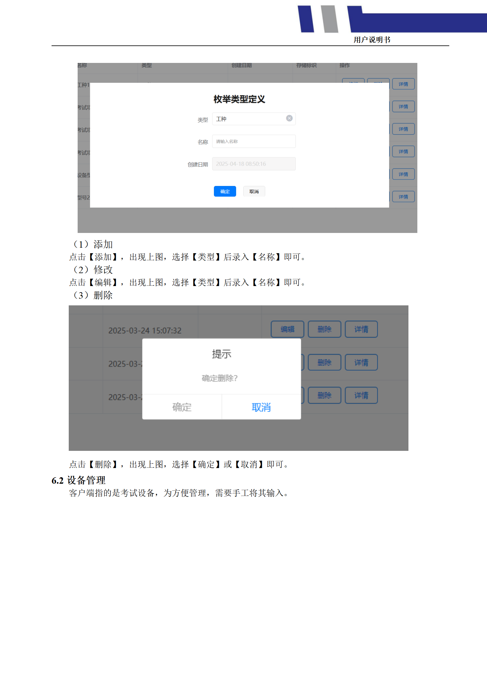 点击【删除】弹出确认框,选择【确认】或【取消】即可。